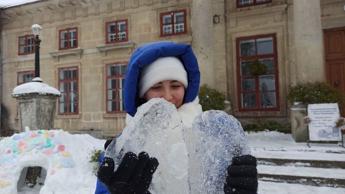Анастасія Донець розповіла, як заготовляли лід для виготовлення зимових скульптур.