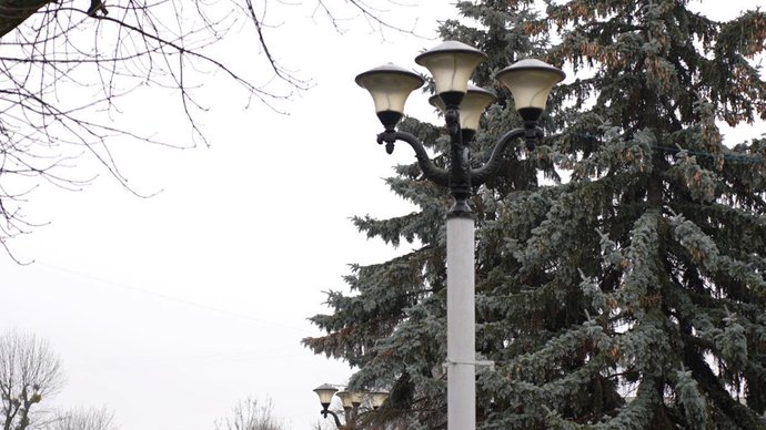 Ліхтарі на центральному майдані у Хмельницькому, лютий-2025. Суспільне Хмельницький