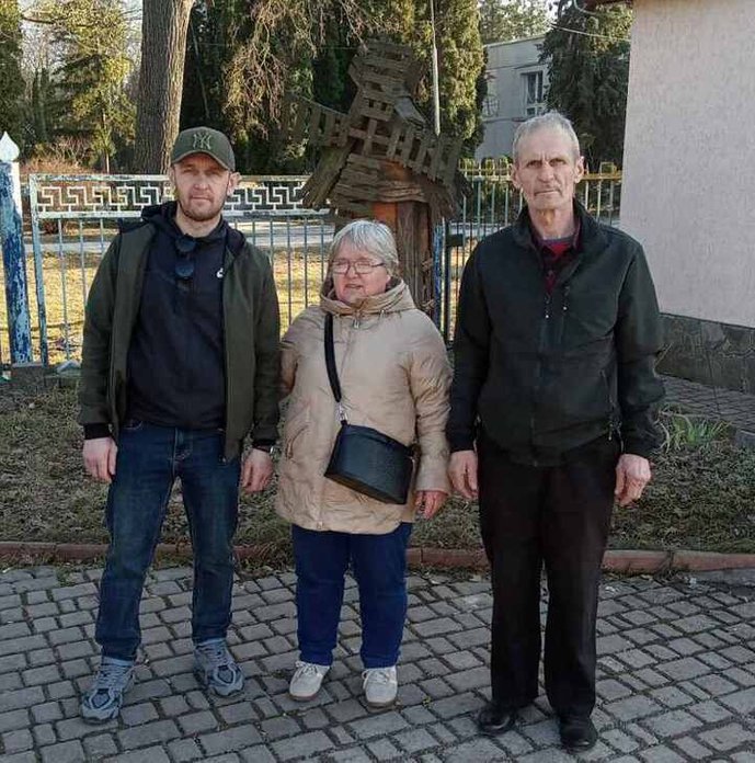 Сергій Зінченко разом зі своїми батьками після звільнення з полону, березень 2026 року. Галина Зінченко