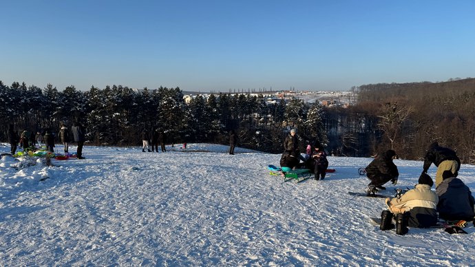 Жителі обласного центру катаються на “Ведмежій горі”, січень 2026 року, Хмельницький. Суспільне Хмельницький