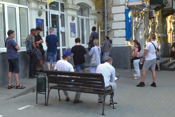 "Нам сказали, що сьогодні зможуть оновити свої дані сто людей. І тут так щодня. Я вже приходив кілька разів. Вчора приходив, але в чергу потрапити не зміг, вже не записували. Прийшов ще сьогодні, сподіваюся, зможу оновити дані", — каже чоловік.