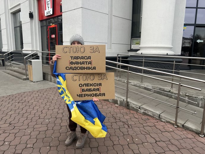 Жінка зазначила, що сьогодні стїть за свого коханого — Олексія Чорнобая.