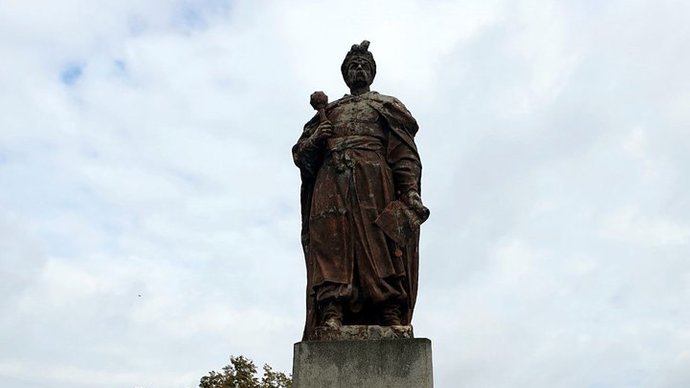 Пам’ятник Богдану Хмельницькому на привокзальній площі в обласному центрі, 12 грудня 2025 року. Суспільне Хмельницький