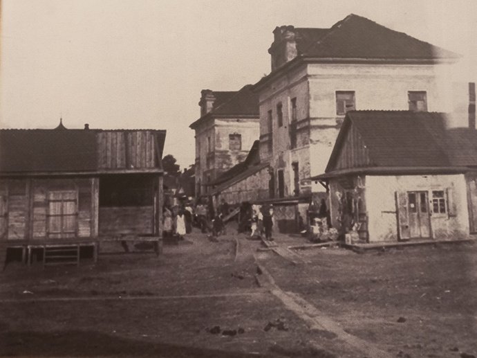 І, звичайно, перебравши просто неймовірну кількість світлин, архівних документів, спогадів, ми спробували це поєднати якось разом і відтворити типову таку торгову лавку. Використали матеріали, які імітують певні предмети, щоб відвідувачі могли відчути автентичність, велику роль зіграло світло, різні аудіозаписи, які створюють настрій того ринку: шуму, звук гусей, коней, розмови людей.