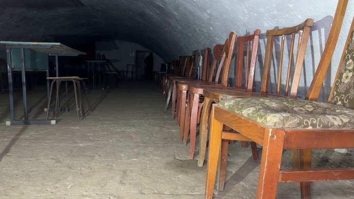 Парти та стільці у підземеллі, грудень 2025 року, Хмельниччина. Суспільне Хмельницький