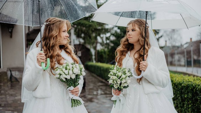 Сестри-двійнята, котрі вирішили зробити подвійне весілля, листопад 2025 року, Хмельниччина. Альона Боголюбова, з архіву наречених