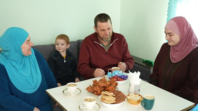 Родина Вєлішаєвих снідає за столом, лютий 2026 року, Хмельниччина. Суспільне Хмельницький
