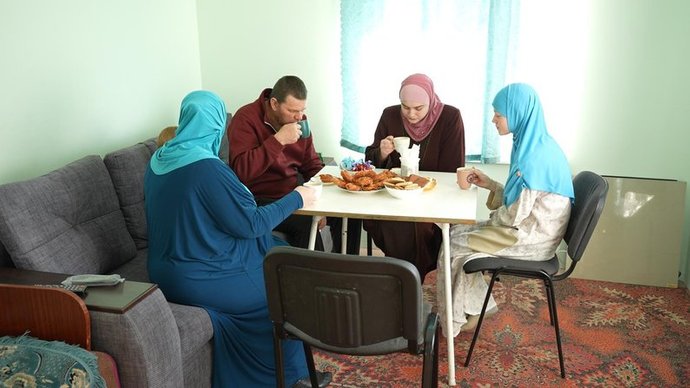 Коли переїздили, розповів Айдер, старшій доньці Асіє було сім років, молодшій Аіші – два. Дружина – Гульнара – займається домом. За її словами, готує традиційні страви. Крім того, родина дотримується інших звичаїв.