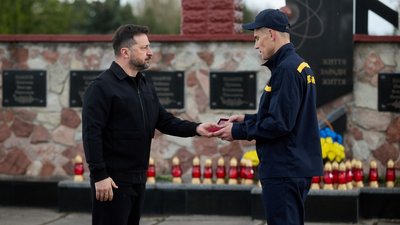 Президент України Володимир Зеленський відзначив державною нагородою рятувальника з Хмельниччини, квітень 2026 року. Пресслужба Головного управління ДСНС у Хмельницькій області