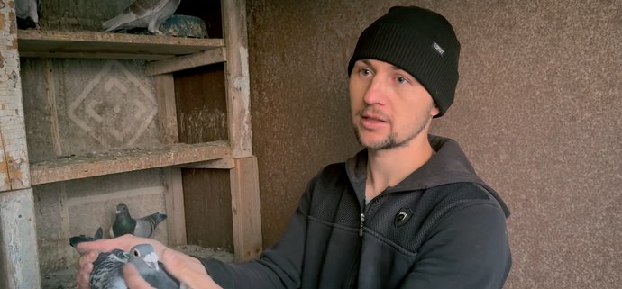 Хлопець переконаний, що у кожному голубі можна прочитати його майбутнє. Навіть блиск очей розповість, чи стане він спортсменом. Через тривоги та цьогорічні дощі навіть досвідчені голубівники мали втрати.