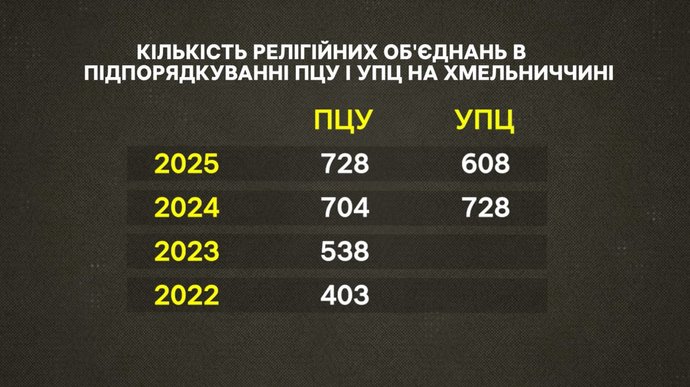 Інфографіка релігійних об’єднань в підпорядкуванні ПЦУ і УПЦ на Хмельниччині. Суспільне Хмельницький