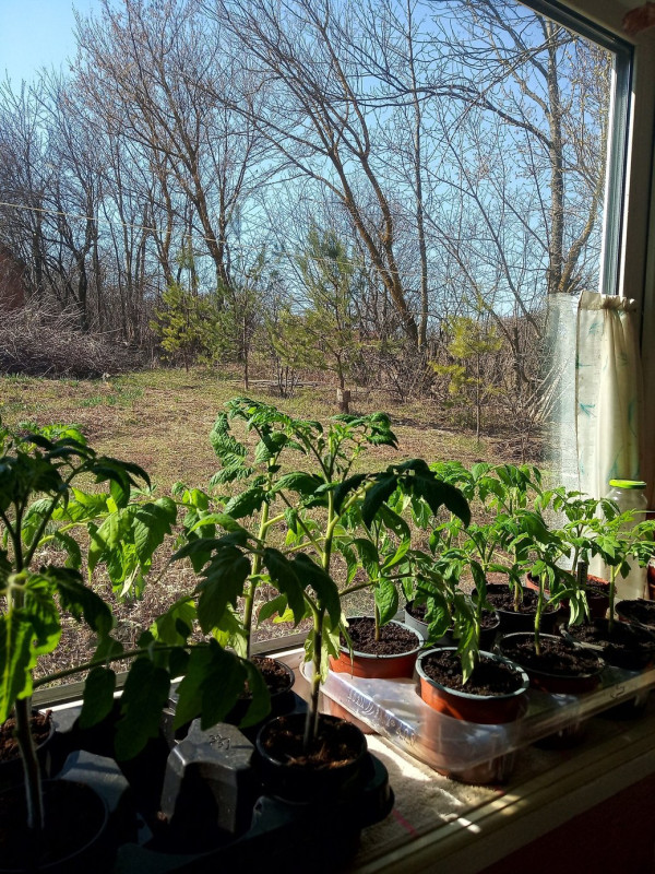 Розсаду томатів, що росте на підвіконні, березень 2025 року, Хмельниччина. Іванна Білоус