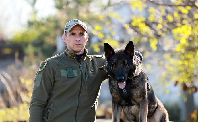 Німецька вівчарка Арчі та її наставник Анатолій Сулік . Поліція Хмельницької області