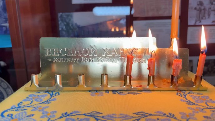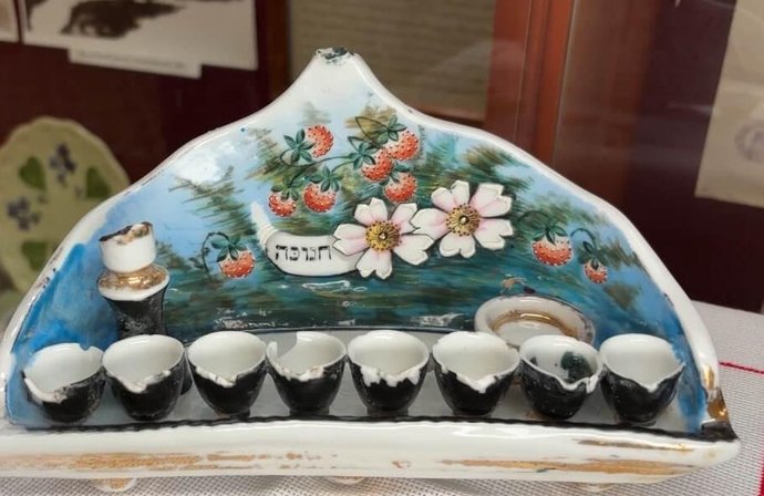 "Якщо сьогоднішня Ханукія пов'язана із запалюванням свічок, то традиційним було запалювання вогню від світильників, в яких використовувалась саме олія. І в фондах нашого музею є ось така Ханукія. Вона орієнтовно десь середини ХІХ століття. Виробництво — європейське, ручний розпис, золотіння".