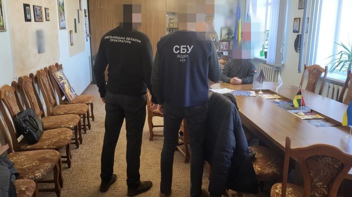 На Хмельниччині викрили селищного голову, керівника підприємства-підрядника та інженера з технагляду, які, за версією слідства, хотіли розтратити майже 1,4 мільйона гривень бюджетних коштів на капітальному ремонті санвузлів у школі, грудень 2025 року. Хмельницька обласна прокуратура
