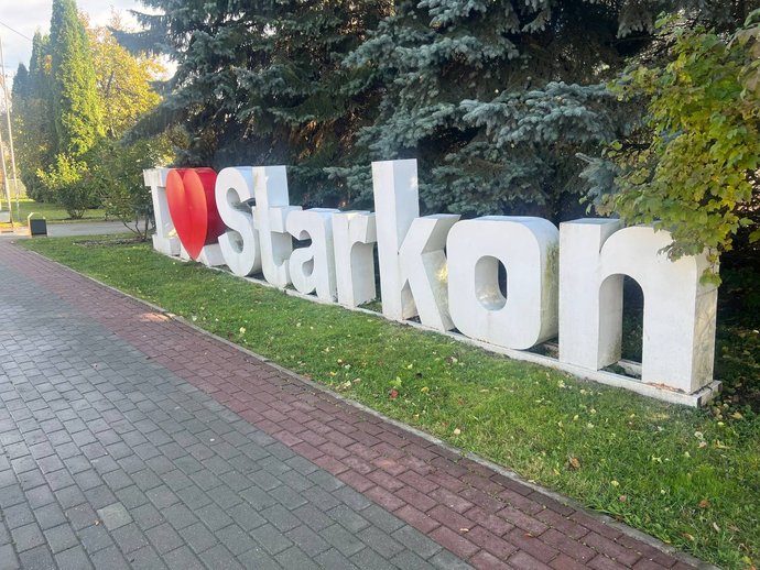 Стела у центрі Старокостянтинова, жовтень-2025 року. Суспільне Хмельницький