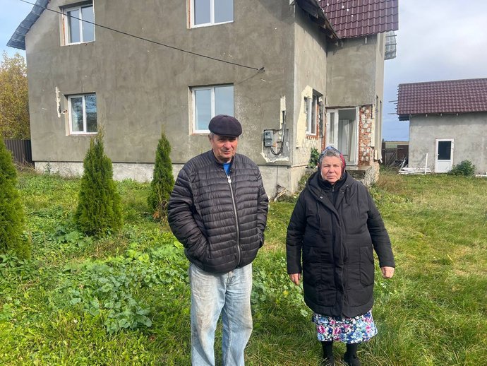 Петро та Ольга Цимбалюки досі відновлюють своє житло після російських обстрілів, жовтень-2025 року. Суспільне Хмельницький