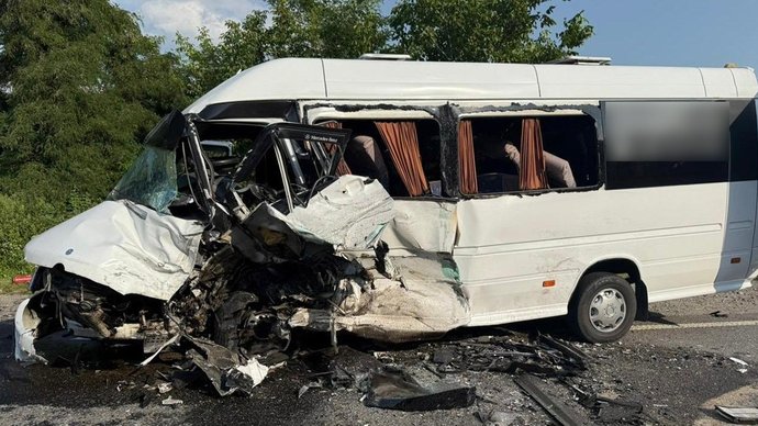 "41-річний водій "Hyundai Santa Fe" допустив зіткнення з мікроавтобусом "Mercedes-Benz Sprinter", яким керував 55-річний житель села Богданівці. Унаслідок аварії травмувалися 18 людей: обидва водії, 14 пасажирів мікроавтобуса та двоє пасажирів легкового автомобіля. Четверо травмованих — троє пасажирів автобуса та малолітня пасажирка легковика — отримали тяжкі тілесні ушкодження. Ще п’ятеро пасажирів мікроавтобуса зазнали травм середньої тяжкості", — йдеться у повідомленні.