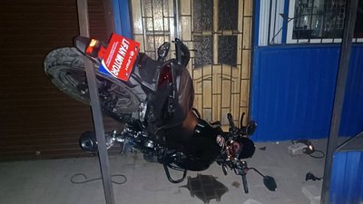 Мотоцикл, яким юнак в’їхав у двері магазину, 3 квітня 2026 року. Поліція Хмельницької області