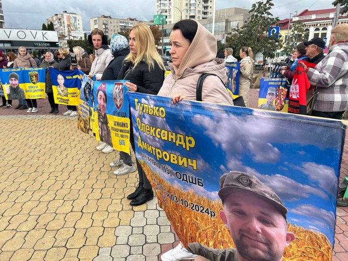 Оксана — мати воїна, який зник безвісти, теж сьогодні прийшла на акцію.