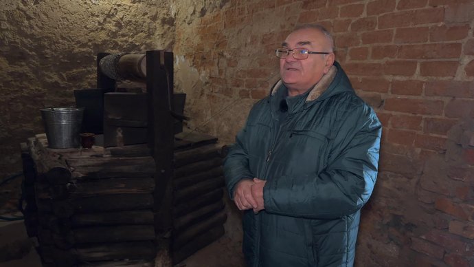 Василь Муляр біля давньої криниці у замку, Хмельниччина, 29 січня 2026 року. Суспільне Хмельницький