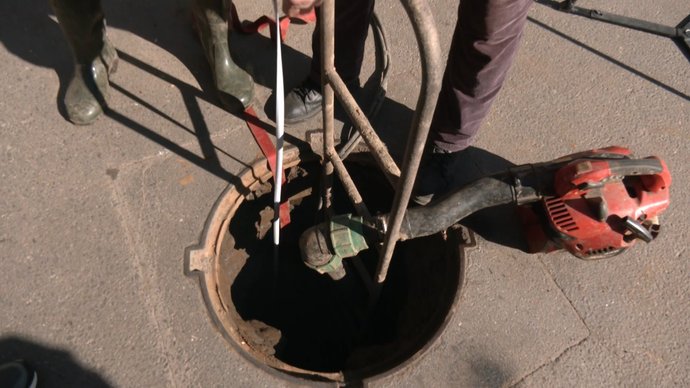 Слюсар-водопровідних мереж Юрій Фуртик розповів, у водяному колодязі зварювальник працює на глибині 2,5 метри. Аби працівник не задихнувся від зварювальних газів, підключили компресор, який нагнітає повітря: "Обрізає болти і вирізає труби шматок, щоб поміняти нову засувку. Нагнітання повітря працює так, щоб дим виходив, а кисень потрапляв".