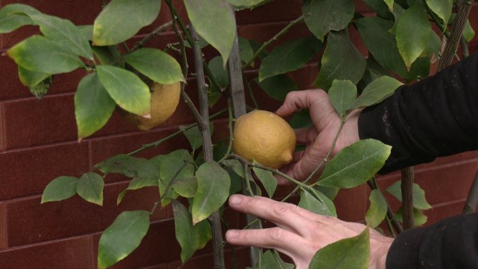 "Перший рік ті квітки, які зацвітуть навесні, в березні або квітні, встигають вирости лимончики. Минулого року було дуже багато, більше 50 лимонів, вони були трохи менші. Вони зелені весь час, Пожовтіють десь у січні місяці. Якщо його залишити на другий рік, коли в березні піде тепло, він знову зеленіє, хамелеон, і продовжує рости. Вирости може до 300 грамів. І цвіте, коли захочеться йому".
