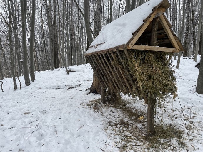 "Кожен рік ми проводимо облік диких тварин, він починається в основному на початку січня і до кінця лютого. Згідно чисельності ми вже плануємо скільки нам потрібно заготовити кормів, і щоб на майбутній період ми могли підгодувати диких звірів. Заготовлено 320 кілограм солі, 2 тисячі кілограм сіна і 1800 кілограм кукурудзи в початках".