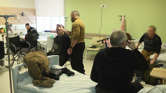 Барбер Віталій у госпіталі робить зачіски військовим, лютий 2026 року, Хмельниччина. Суспільне Хмельницький
