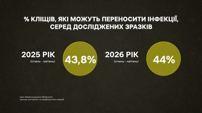 Як повідомили Суспільному в Хмельницькому обласному центрі контролю та профілактики хвороб, торік у лабораторії дослідили 484 кліщі. Із них третина виявилася інфікованою та такою, що може переносити інфекції. Цьогоріч уже перевірили 25 кліщів, з них 11 були інфіковані.