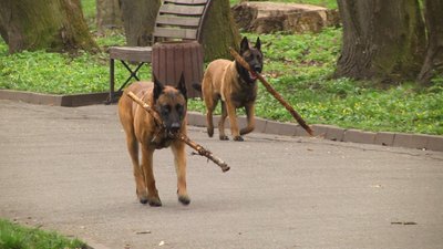 Бельгійські вівчарки (малінуа) під час прогулянки в парку імені Михайла Чекмана, Хмельницький, 16 квітня 2026 року. Суспільне Хмельницький