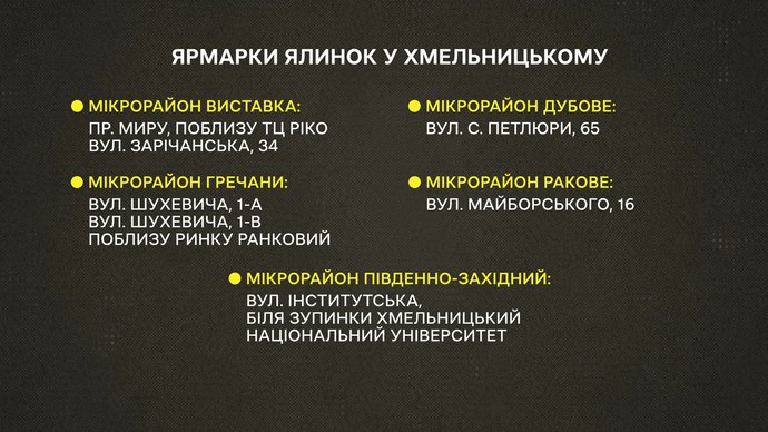 Місця, де продаватимуть ялинки в обласному центрі. Інфографіка Суспільне Хмельницький