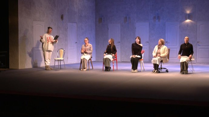 Акторки під час репетиції вистави на сцені театру, Хмельницький, березень 2026 року. Суспільне Хмельницький