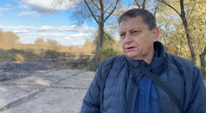 Віктор Карван проживає у Гречанах і бачить, як просуваються роботи з облаштування постійного моста, листопад-2025 року. Суспільне Хмельницький