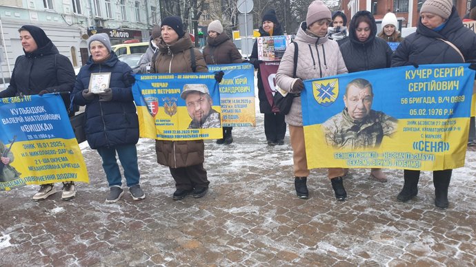 Люди з плакатами прийшли на акцію “Поверніть героїв з полону. Знайдіть безвісти зниклих”, 26 грудня 2025 року, Хмельницький. Суспільне Хмельницький