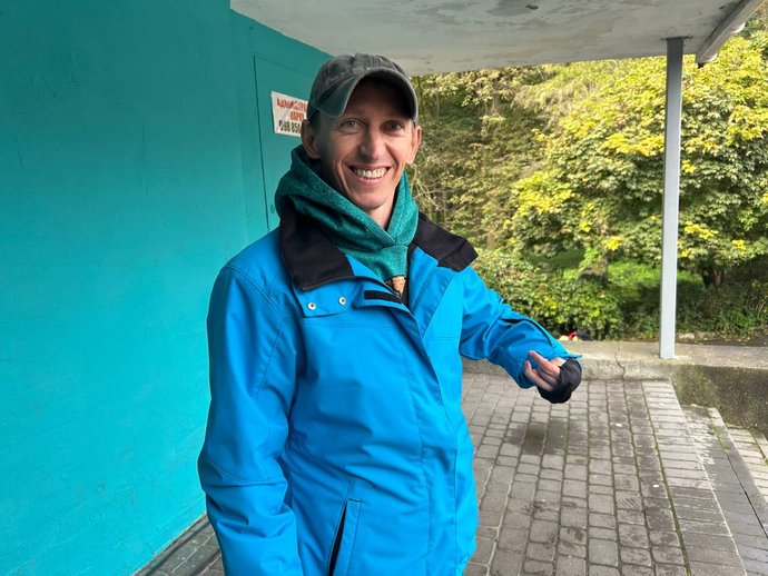 Володимир Федорович разом з хлопцями, які бігли разом з ним, 4 жовтня 2025 року. Суспільне Хмельницький