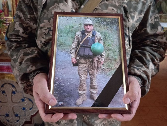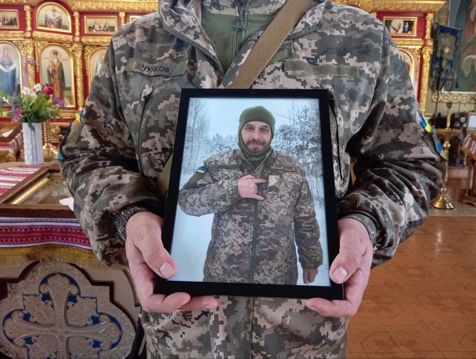 У Свято-Георгіївському храмі сьогодні попрощались із ще одним військовим — п’ятдесятилітнім Олегом Ніколаєвим. Був привітним, завжди усім допомагав, згадує про загиблого його знайома Леся.
