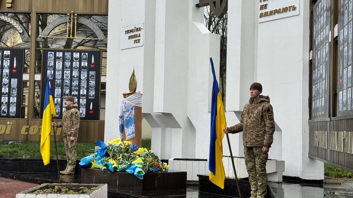 У Хмельницькому біля пам’ятника Героям Небесної Сотні відбулося урочисте покладання квітів з нагоди Дня Гідності та Свободи, 21 листопада 2025 року. Суспільне Хмельницький