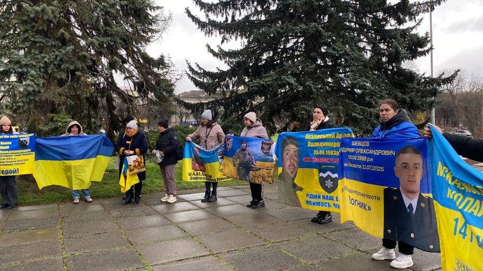 Учасники акції хочуть, аби створили “Алею Надії” з портретами їх рідних, які перебувають у полоні або зникли безвісти, 18 листопада 2025 року, Хмельниччина. Суспільне Хмельницький