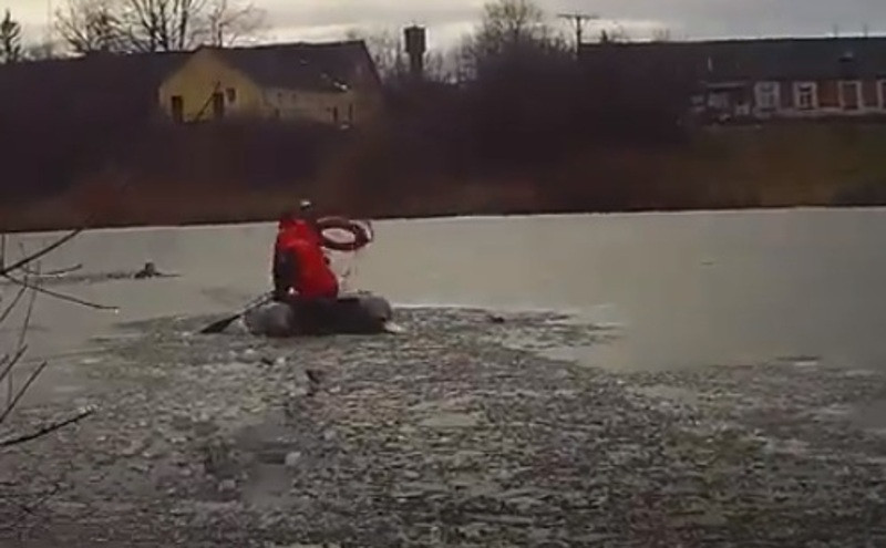 Чоловік провалився під лід на місцевому ставку. Фото: скрін з відео