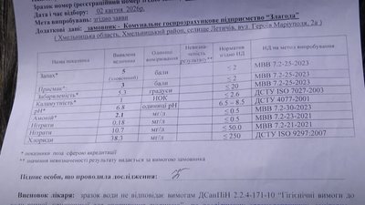 Результати лабораторних зразків аналізу води у Летичеві, Хмельниччина. Суспільне Хмельницький