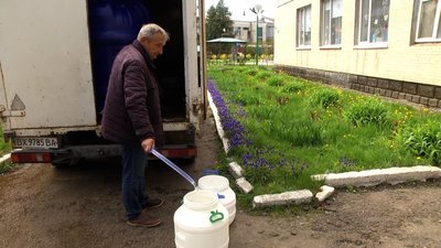 Водій місцевого комунального підприємства Віктор Ніцевич розповів, розвозить питну воду навчальним закладам у будні дні.