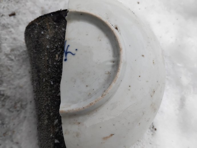 Уламок порцелянового виробу із маркуванням, Хмельниччина, січень 2026 року. Анастасія Донець