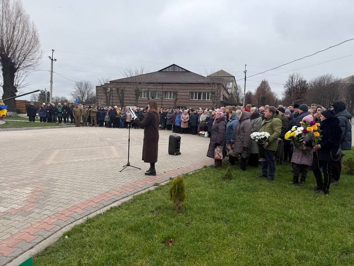 На відкриття меморіалу зібралися рідні, близькі та колеги, Хмельниччина, 6 грудня 2025 року. Суспільне Хмельницький