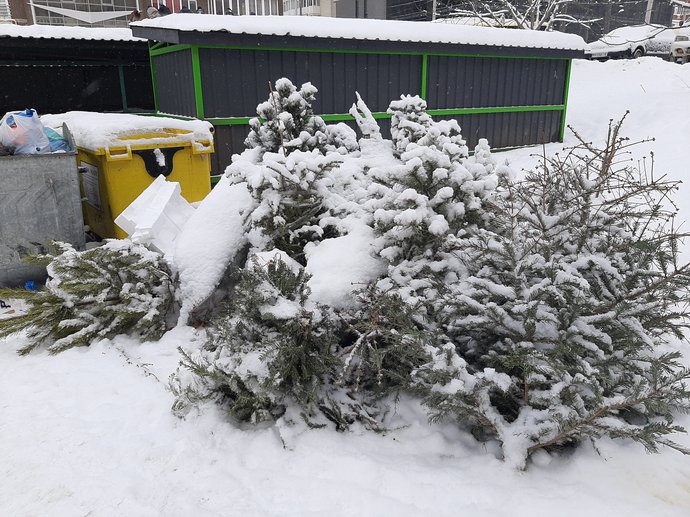 Хмельничанин Петро Делечук зазначив, на різдвяно-новорічні свята у нього була жива ялинка: "Виніс дня два-три тому. Вже забрали. Поклав біля сміттєбаків".