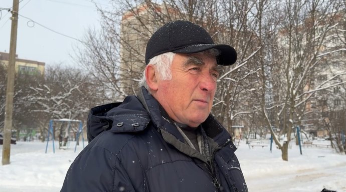 Хмельничанин Петро Делечук розповів, на різдвяно-новорічні свята у нього була жива ялинка, яку він залишив біля контейнерного майданчика, січень 2026 року, Хмельницький. Суспільне Хмельницький