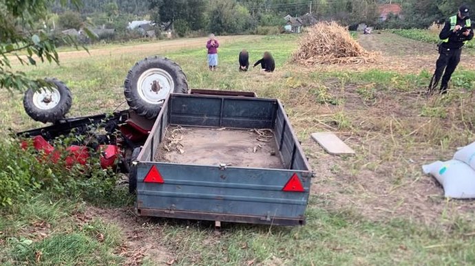 За їхньою інформацією, 50-річний житель села, керуючи мототрактором "Forte МТ-181LT" із саморобним причепом, не зміг утримати керування, внаслідок чого транспортний засіб перекинувся.
