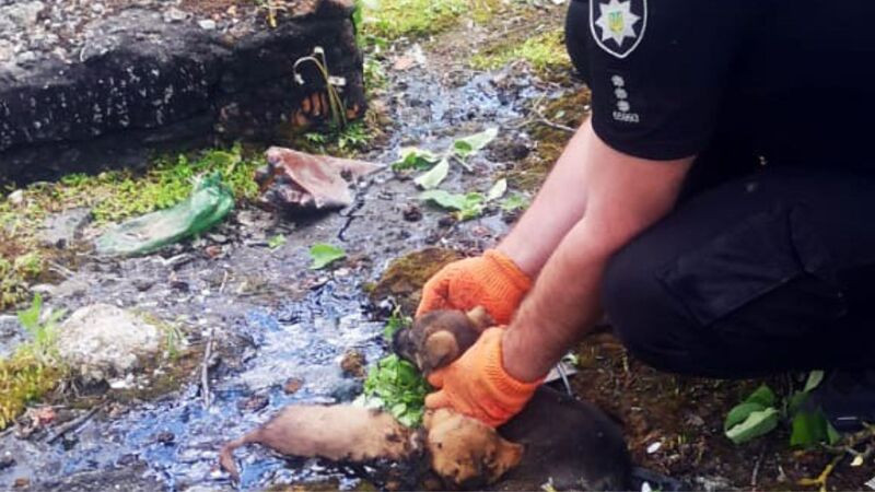 У селі Зіньківці, що на Кам’янеччині, поліцейський офіцер Сергій Терефера витягнув з пастки четверо цуценят. Нині зооволонтери шукають чотирилапим друзям домівки.